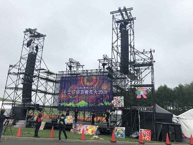 毎年恒例となりました、花火大会のステージ、花火の音響をはじめとして運営関係に