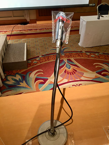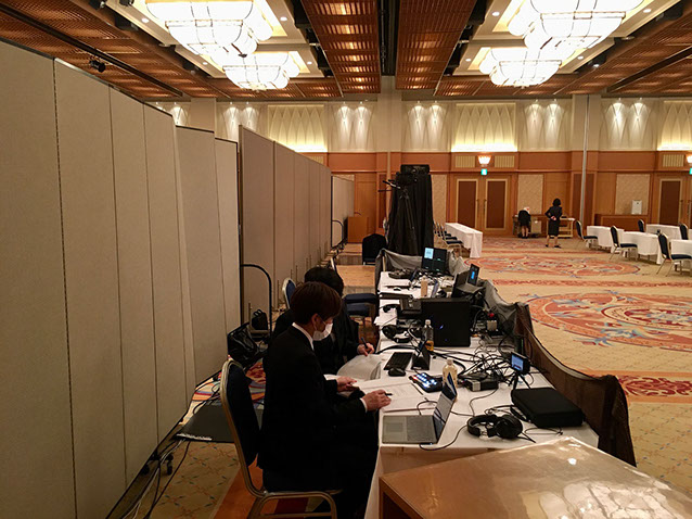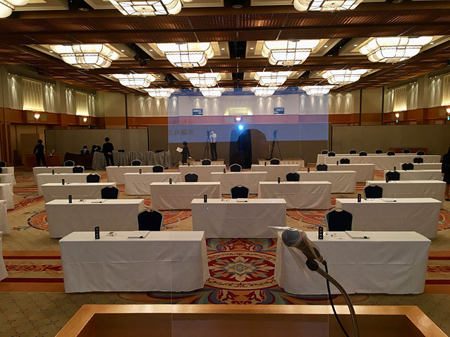 会場のホテルでは、ゆとりある配席・マイク消毒の徹底・発言者の前にアクリル板設置等