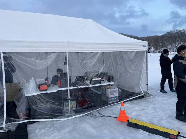 ウポポイのポロト湖が結氷し湖上で発着を行ったためドローンバッテリーの性能低下の対策や