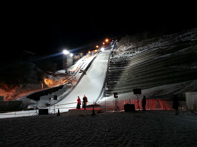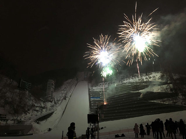 大倉山ジャンプ競技場から花火を音楽に合わせて打ち上げ、