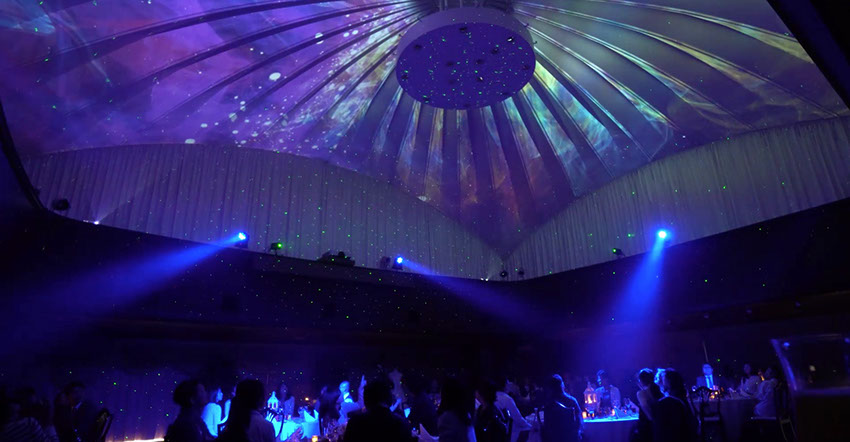テラスルームの天井に映し出されるプロジェクションマッピングと