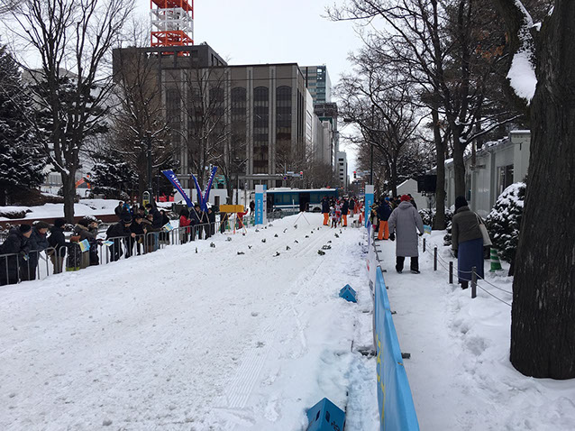 大通公園でクロスカントリースキーの競技大会が開催されるのは初の試み。