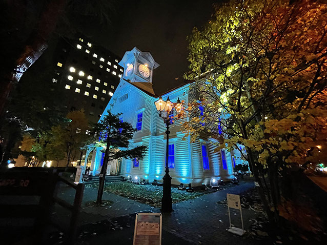 札幌市観光需要回復支援事業として札幌時計台を音楽とライティングで演出する